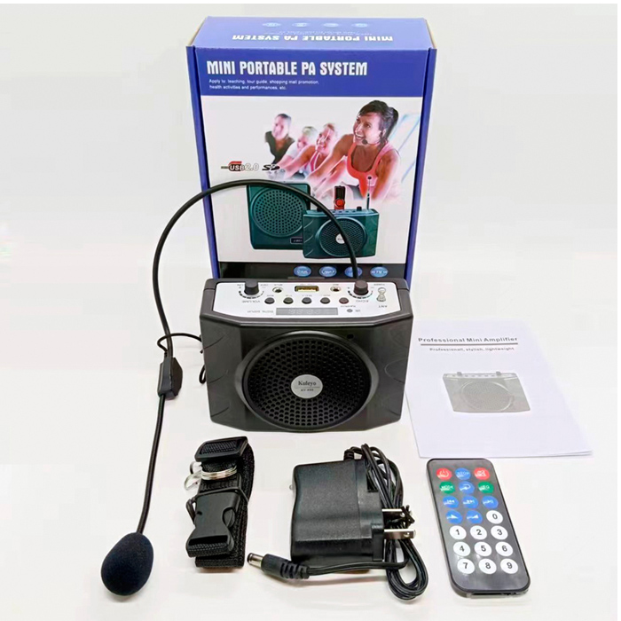 Speaker * 1 Wired Head Wearing Mic * 1 Shoulder Strap * 1 Remote Control * 1 Charger * 1 Instructions * 1